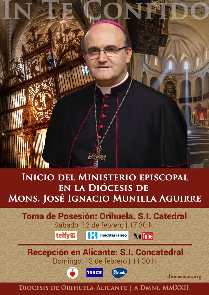 Ya sabéis que el sábado toma posesión el nuevo Obispo de la diócesis de Orihuela – Alicante Don José Ignacio Munilla. Por tanto, os convocamos a todos este próximo sábado 12 de febrero desde las 16:00 horas, en la calle Alfonso XIII de Orihuela, para recibir como colegio diocesano a nuestro nuevo obispo y pastor.
