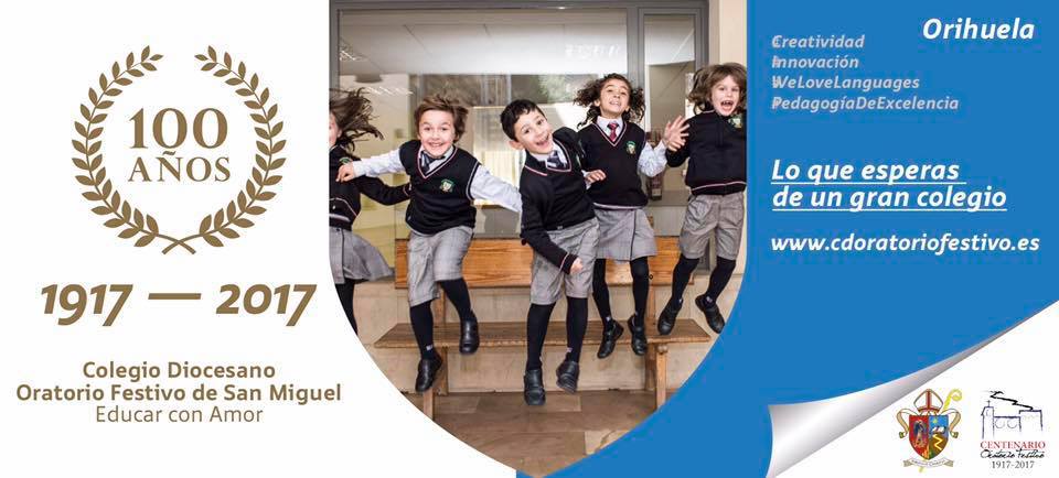 Desde el mes de mayo del pasado año y hasta la próxima fiesta de María Auxiliadora, el Colegio Diocesano Oratorio Festivo de San Miguel está celebrando su centenario. En toda la diócesis y especialmente en Orihuela, debemos felicitarnos y dar gracias a Dios por este primer siglo de vida de nuestro querido Oratorio Festivo.