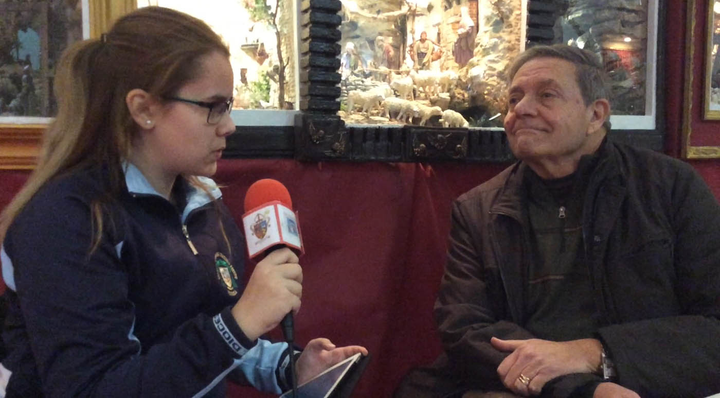 Nuestra alumna Sara Bolanowski Ferrer de 3º ESO hace la entrevista para el periódico escolar El Pupitre, sobre el belén realizado por este antiguo alumno del colegio. Y que se puede visitar estos días en el Museo de la Semana Santa de Orihuela.