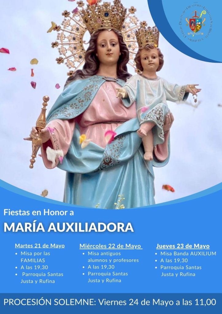 Estos días se celebrará la Santa Misa en su honor, pidiendo y colaborando algún grupo vinculado a Ma Auxiliadora. El Martes 21 todas las familias, el Miércoles 22 antiguos profesores y alumnos, y el Jueves 23 la Banda