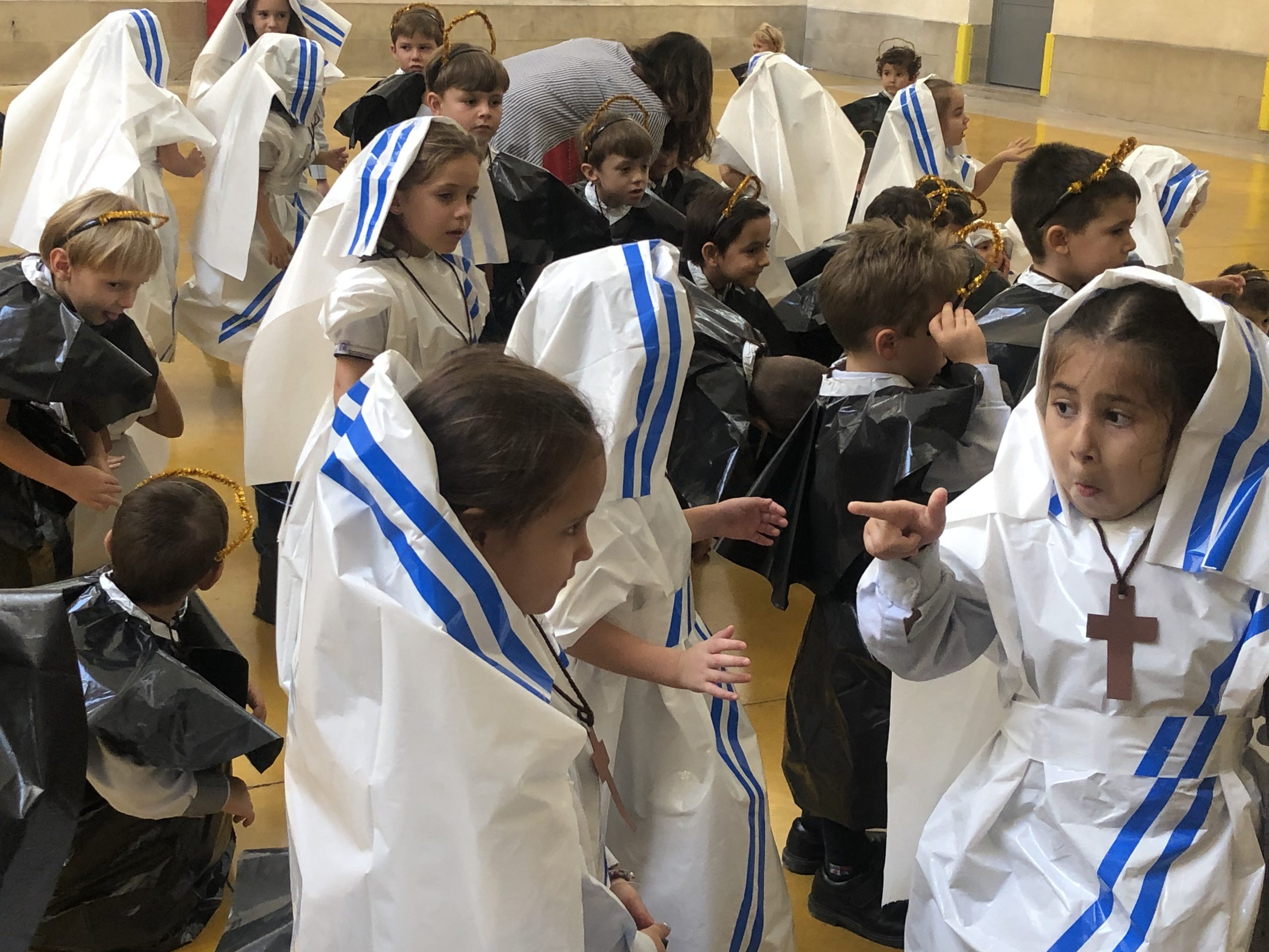 La tarde del 31 de octubre, víspera de la festividad de Todos los Santos, nuestros pequeños de infantil se han disfrazado de santos y han disfrutado después de una merienda por gentileza de la AMPA. Concretamente, de san Juan Bosco, salesiano e inspirador de nuestro colegio y santa Teresa de Calcuta. A su término, celebramos la Eucaristía, ofreciéndola por los difuntos de nuestro colegio en este año 2019.