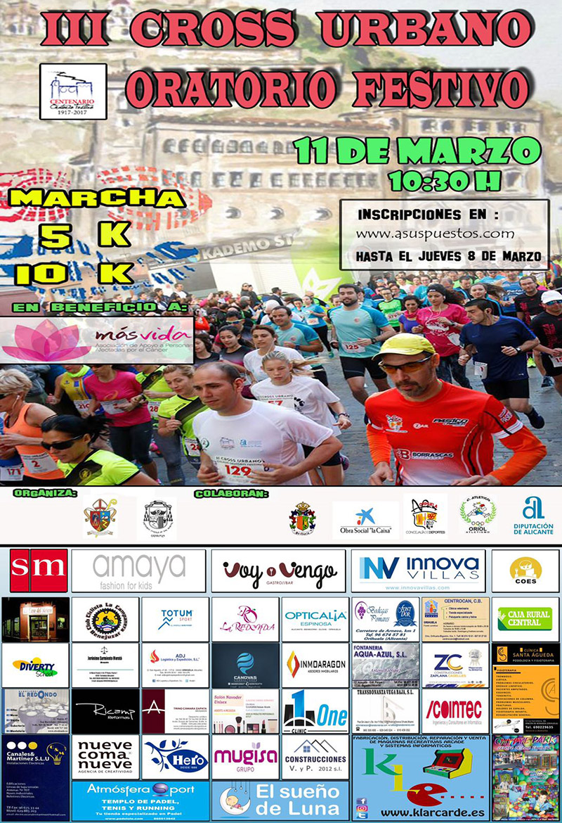 La III edición del Cross Urbano Oratorio Festivo se celebrará el domingo 11 de marzo a partir de las 10.30 horas y recorrerá varias calles del casco urbano de Orihuela y un tramo de los sotos del río Segura.