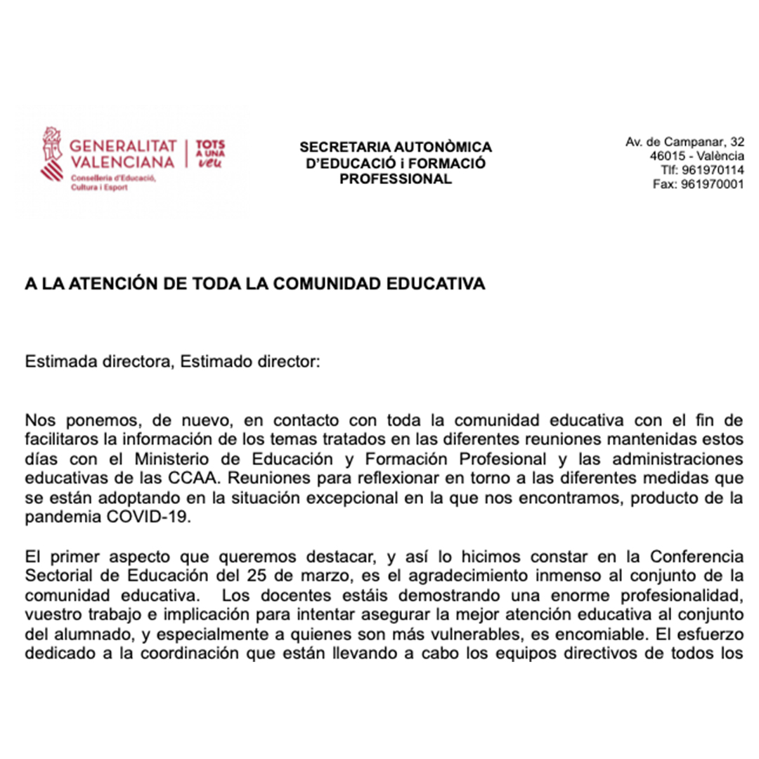 Escrito de la Conselleria d’Educació de la C. Valenciana