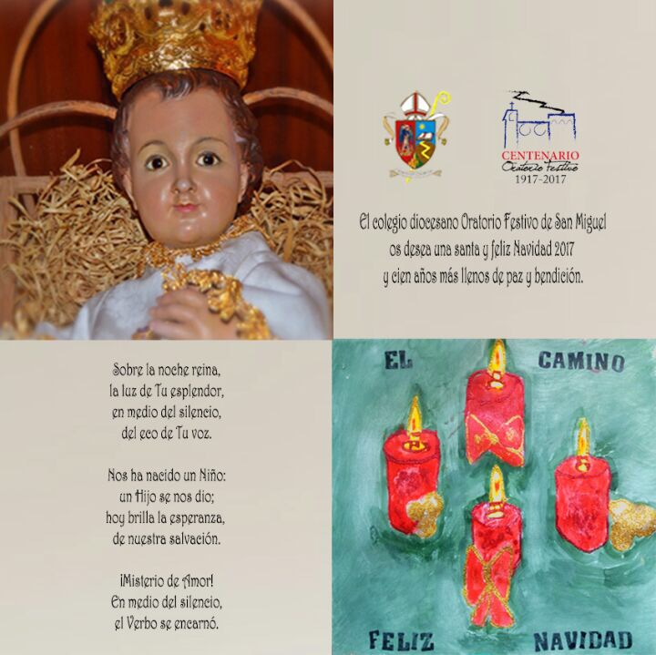 El Colegio Diocesano Oratorio Festivo de San Miguel, en este año tan especial de la celebración de sus 100 años educando con amor a nuestros niños y jóvenes, os desea una santa y gozosa Navidad, y un feliz año nuevo 2018.