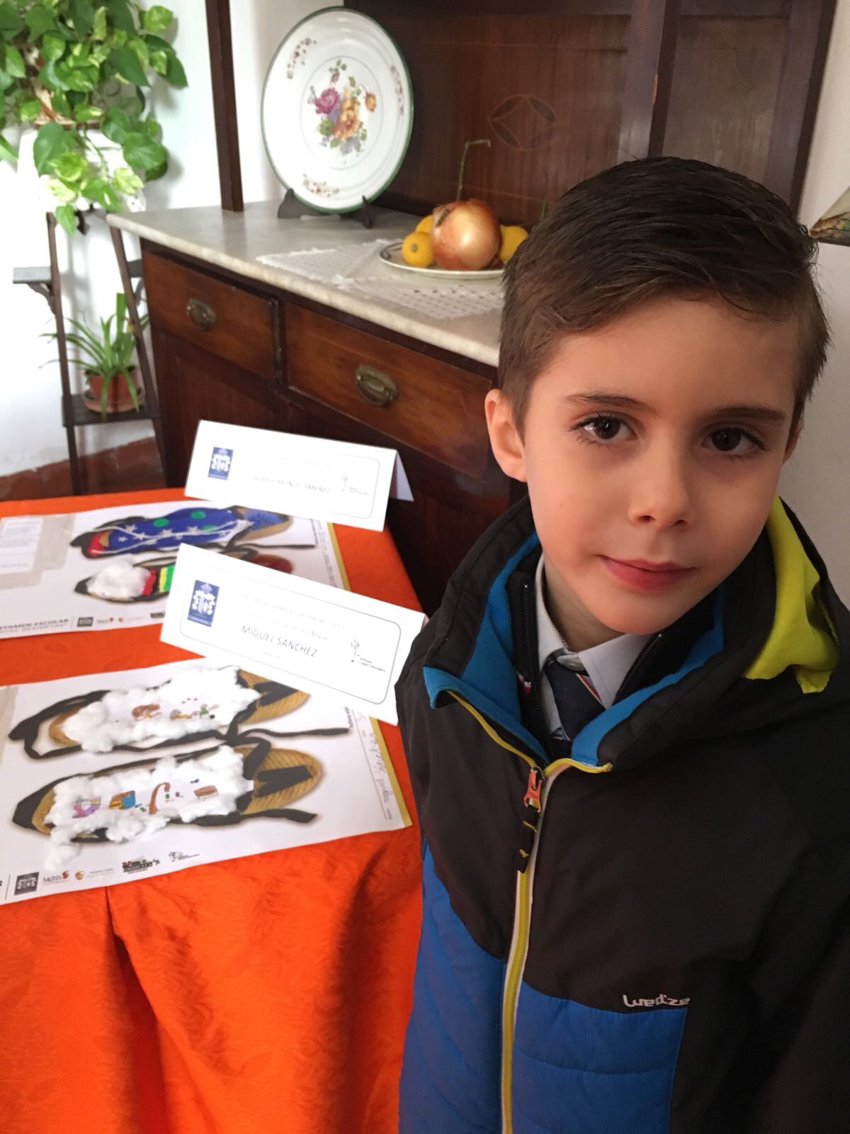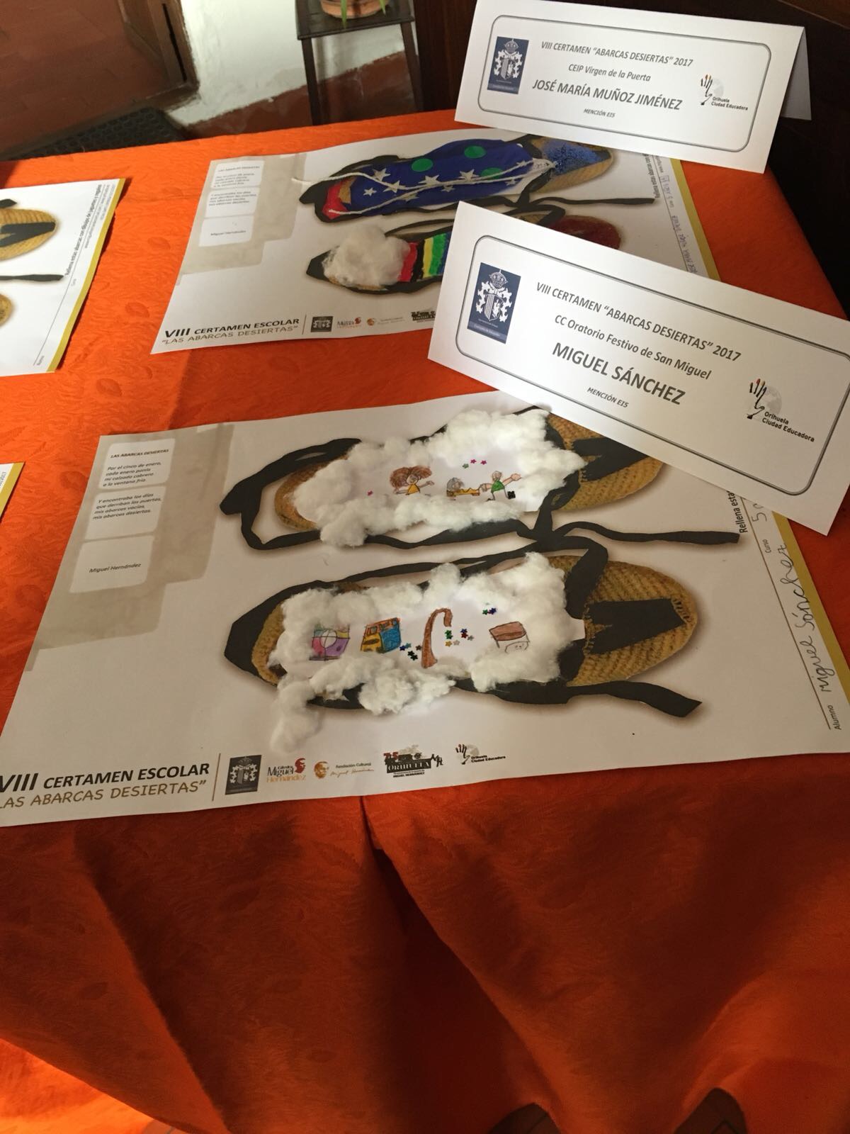 El trabajo presentado por el alumno de Educación Infantil de 5 años, Miguel Sánchez Osés, en el certamen las abarcas desiertas ha resultado reconocido junto a otros 10 trabajos más, de entre un total de 562 trabajos presentados por alumnos de todo el municipio de Orihuela. La concejalía de Educación del Ayuntamiento de Orihuela hace entrega del reconocimiento a los alumnos premiados en la casa museo del poeta oriolano Miguel Hernández.