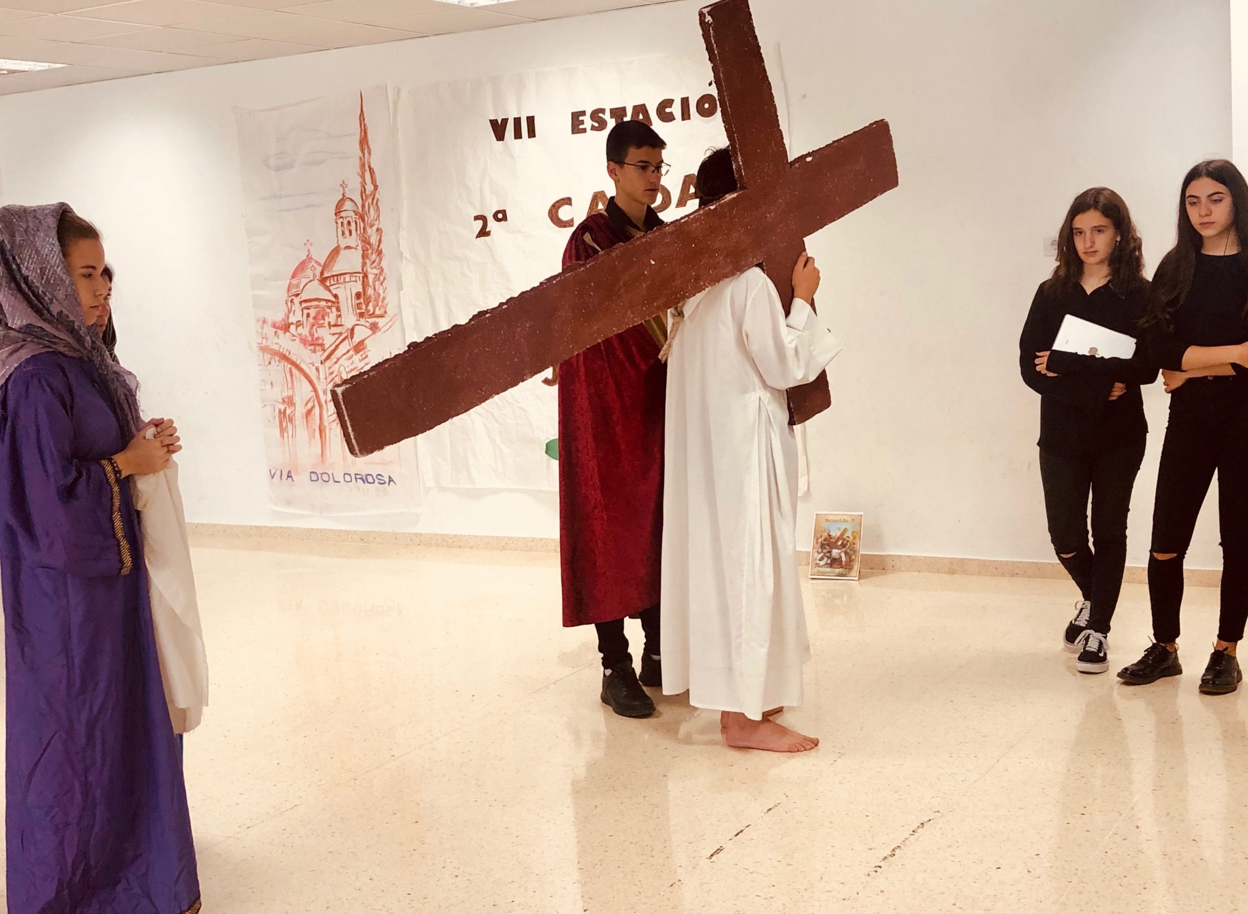 Los alumnos y profesores, después de estos días de Cuaresma de preparación; mediante la lectura, el silencio, la reflexión, la oración y la representación de las 14 estaciones de penitencia del Vía Crucis, proponen la posibilidad de vivir un especial encuentro personal y comunitario con Dios.